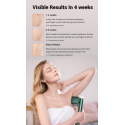 Použití přístroje je neuvěřitelně snadné a rychlé. Nejprve oholte oblast, kterou si přejete ošetřit. Poté jednoduše přiložte hlavici přístroje k pokožce a aplikujte jemný světelný pulz přímo ke kořínku chloupku. Pro nejlepší výsledky doporučujeme každé místo ošetřit dvěma po sobě jdoucími záblesky. Pro optimální výsledky dodržujte následující plán: první dva týdny používejte přístroj třikrát týdně, abyste zpomalili růst chloupků. Během 3. a 4. týdne snižte frekvenci na dvakrát týdně pro dosažení trvalého odstranění chloupků. Po této úvodní kúře stačí přístroj použít jednou za měsíc pro případné udržovací ošetření a pro zachování dokonale hladké pokožky.