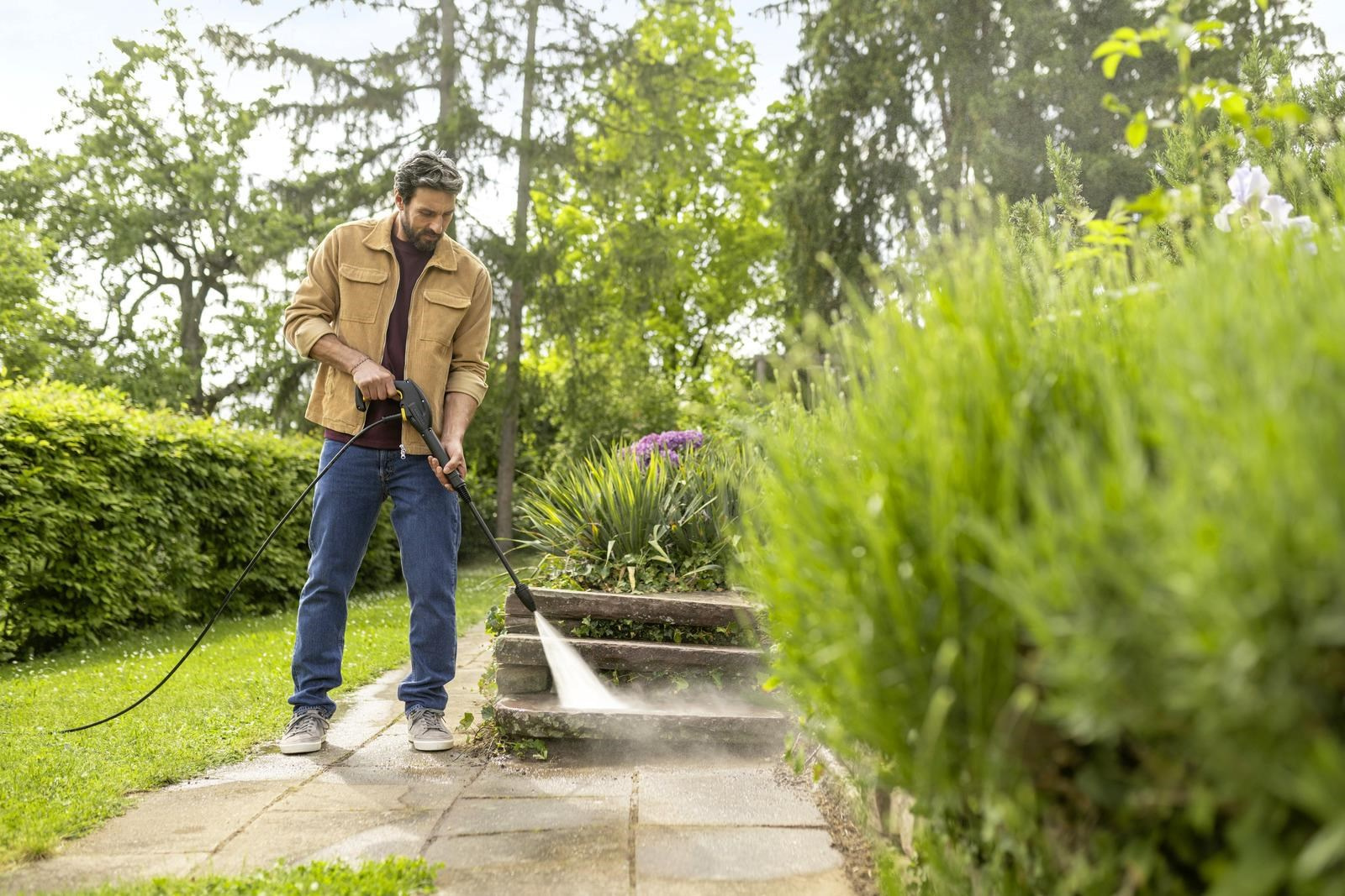 Snadná přeprava a rychlé uložení: tlaková myčka K 4 Classic, včetně teleskopické rukojeti, pro běžné použití na mírně znečištěné povrchy..