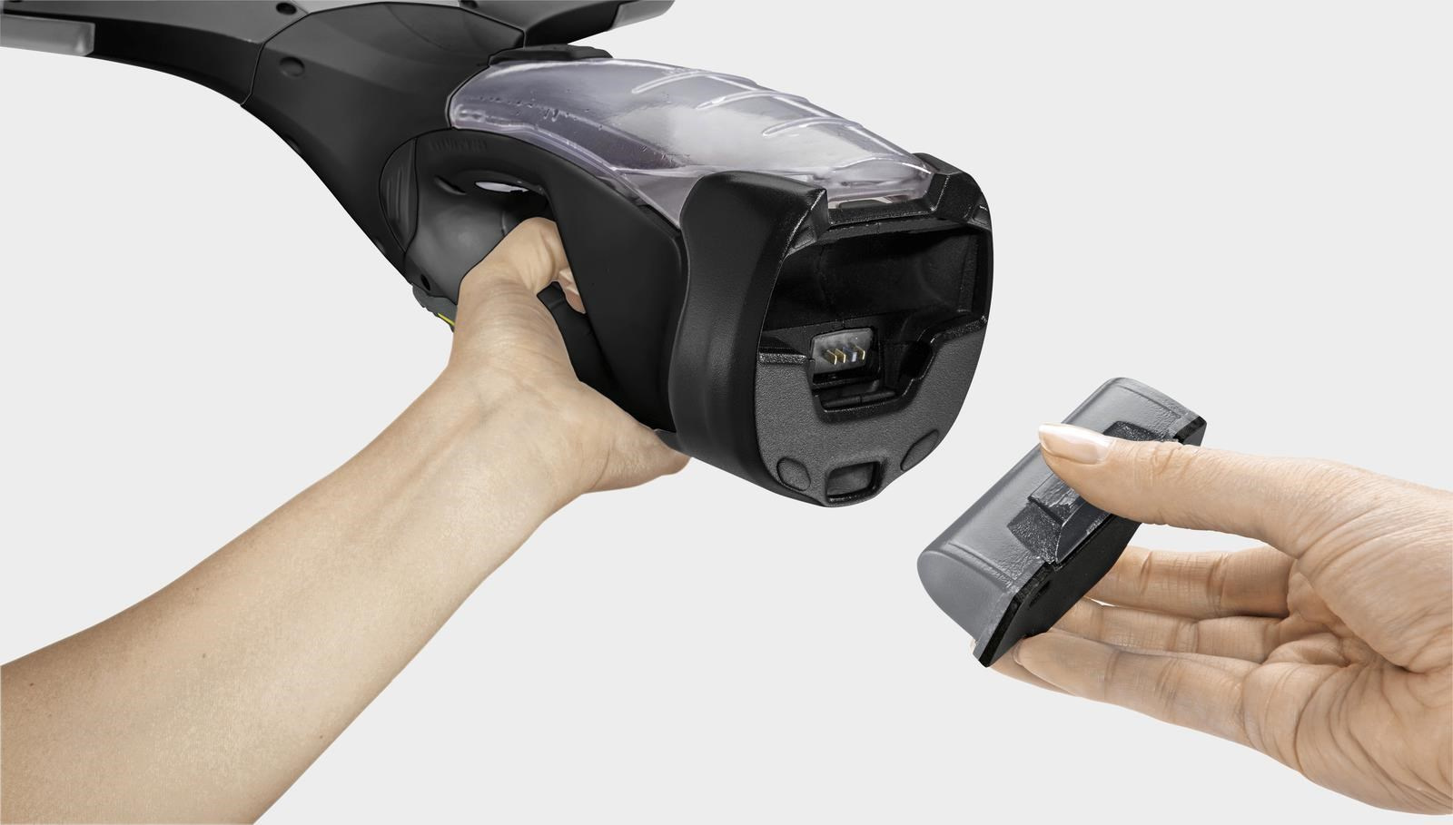 Díky vyjímatelné a jako příslušenství dodávané baterii lze okna čistit bez přerušení a libovolně dlouho.Okenní vysavač WV 5 Plus Anniversary Edition: Pohodlné čištění hran