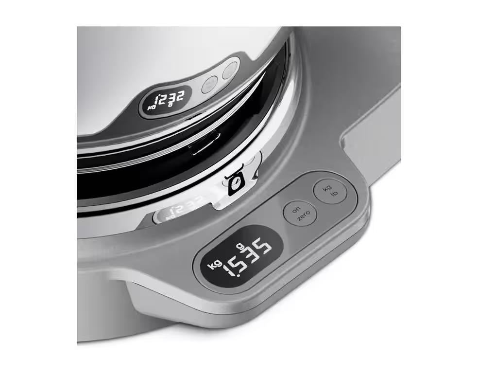 Přesná váha EasyWeigh váží přímo v pracovní míse bez nutnosti přemisťování surovin, čímž šetří čas a omezuje nepořádek při pečení. Dle potřeby se dá navíc vážit kdekoliv na spotřebiči, tedy i na vysokorychlostním výstupu ve vašem food processoru, mixéru nebo odšťavňovači.