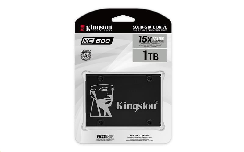 KC600 značky Kingston je SSD s plnou kapacitou navržený pro pozoruhodný výkon a optimalizován k zajištění schopnosti funkčního systému reagovat s neuvěřitelnou dobou bootování, nahrávání a přenosu. Dodáván je ve velikosti 2,5“ s využitím rozhraní SATA Rev 3.0 se zpětnou kompatibilitou. KC600 využívá nejnovější technologii 3D TLC NAND, zatímco současně podporuje plně zabezpečenou sadu, která zahrnuje 256bitové hardwarové kódování AES, TCG Opal a eDrive. Má rychlosti čtení/zápisu až 550/520 MB/s* k účinnému ukládání Vašich dat až do velikosti 2 TB.** Dostupný je v sadě, která Vám poskytne vše, co potřebujete pro hladkou a snadnou instalaci a aktualizaci Vašeho stolního nebo přenosného počítače.