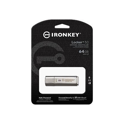 USB flash disky Kingston IronKey Locker+ 50 poskytují zabezpečení na spotřebitelské úrovni s hardwarovým šifrováním AES v režimu XTS včetně zabezpečení proti BadUSB s digitálně podepsaným firmwarem a zabezpečení proti útokům hrubou silou. Řada LP50 je také kompatibilní s TAA.