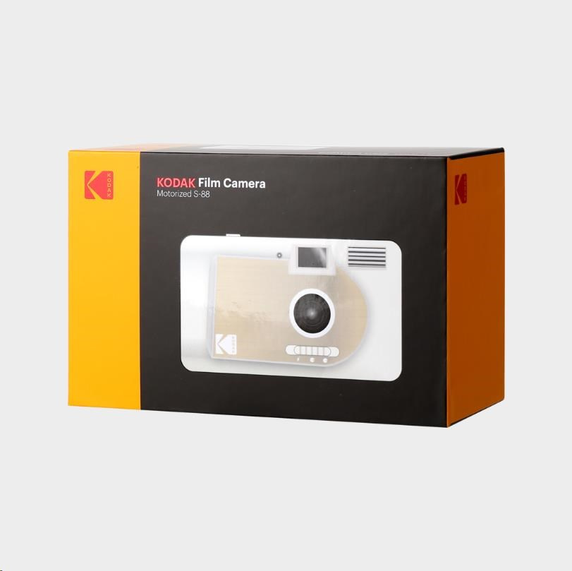 Motorizovaný filmový fotoaparát Kodak S88 je k dispozici v bílém lněném a stříbrném pouzdře. Tento 35mm fotoaparát na barevný negativní film od společnosti Kodak se může pochlubit uživatelsky přívětivým designem, který usnadňuje vkládání filmu. Fotoaparát S88 je vybaven vylepšeným vestavěným bleskem a objektivem s pevným ohniskem a zajišťuje bezproblémové a efektivní fotografování. Kodak S88 vám umožní zachytit okamžiky stylově a jednoduše