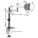 Technické údaje: nosnost 8kg plně nastavelný - 3D polohování monitoru na monitory s úhlopříčkou 13" až 27" podpora VESA 75x75 a 100x100 otáčení do stran +/- 180° náklon +/- 35° rotace obrazovky +/- 180° - funkce PIVOT nastavení vzdálenosti od nosníku 0mm až 396mm nastavení výšky max. 364mm uchycení na stolové desky o průměru 10mm až 85mm dva typy uchycení na stolové desky - svěrák na okraj stolu nebo skrz desku kamkoliv do prostoru krásný vzhled - chromový nosník, ramena ve stříbrném provedení materiál hliník vynikající kvalita, spolehlivost a dlouhá životnost instalační materiál součástí balení záruka 3 roky.
