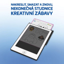Velká plocha tabulky nabízí spoustu místa pro kreslení i zapisování nápadů, a přitom zůstává šetrná k dětským očím. Displej nebliká, nevyzařuje modré světlo a nenamáhá zrak ani při delším používání. Celý set, tabulka i šablony, je navíc uložený v praktickém obalu ve tvaru knížky, díky kterému zůstane všechno pěkně pohromadě a děti si tak mohou vzít zábavu kamkoliv s sebou.