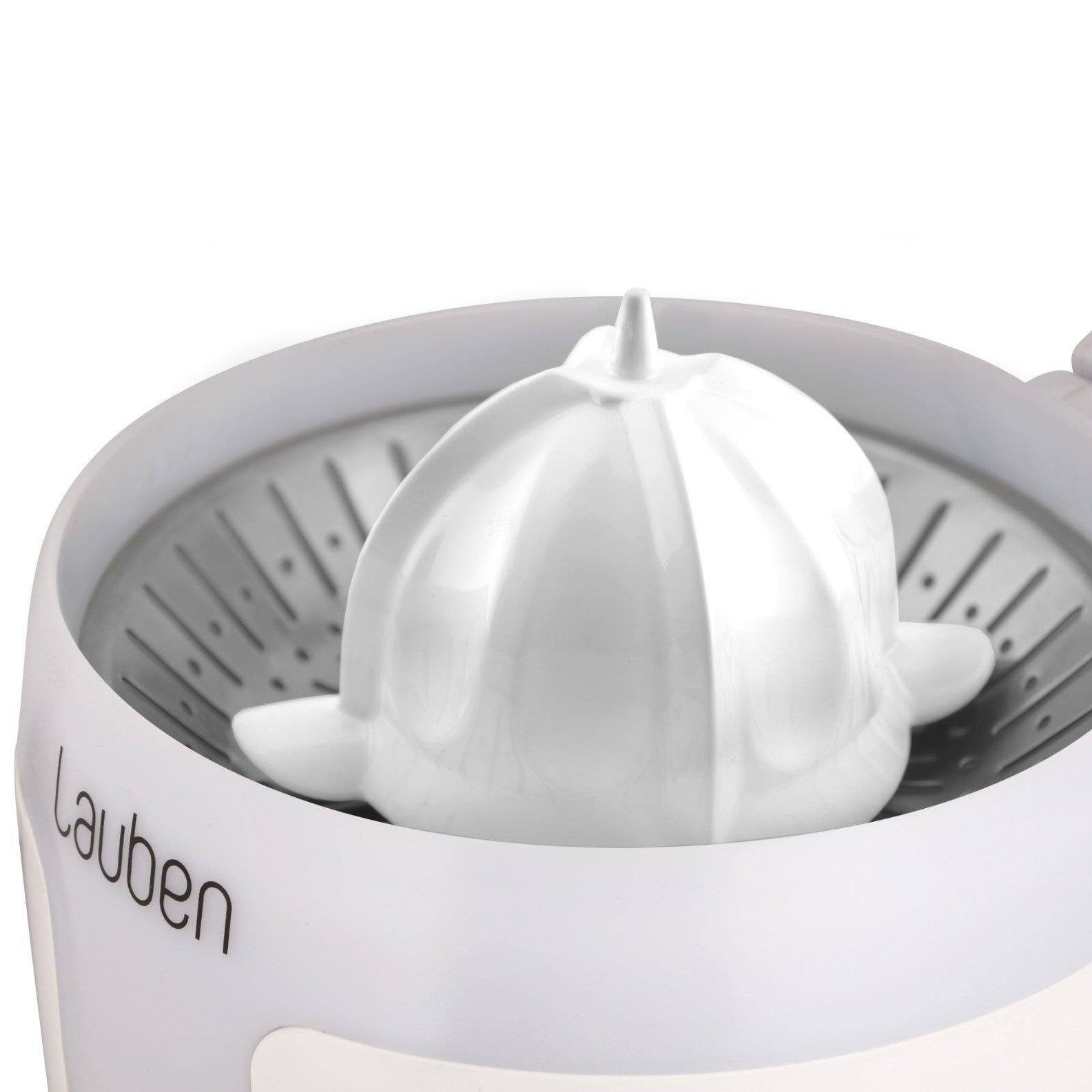 Šťáva plná vitamínů snadno a rychleVyznavačům zdravého životního stylu nesmí doma chybět pomocník v podobě elektrického citrusovače Lauben Electric Citrus Juicer 110WT. Jeho čistý design ozdobí každou kuchyňskou linku, kterou díky funkci Anti Drip nepotřísní ani kapka šťávy. Funkce proti odkapávání zajišťuje, že džus odtéká přímo do sklenice či zůstává v zásobníku. Rychlost otáček při odšťavňování je nastavena tak, aby si šťáva uchovala maximum vitamínů. Chuť navíc není nijak ovlivněna, neboť části dotýkající se ovoce jsou nerezové či z plastu splňujícího nejpřísnější nařízení EU a neuvolňují tak žádnou pachuť ani aroma. Tvar kužele a nastavení páky proces odšťavňování zefektivňují a tichý provoz umožňuje přípravu džusu v jakoukoliv hodinu. Bezpečný provoz zajišťují protiskluzové nožičky a pojistka zabraňující spuštění, není-li lis správně sestaven. Jistě potěší i snadná údržba, odnímatelné části stačí vložit do myčky.