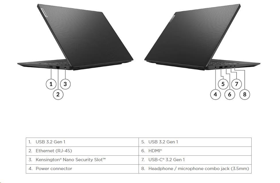 Popis LENOVO NTB V15 G4 AMN - AMD Ryzen™ 5 7520U,15.6" FHD TN,8GB,512SSD,HDMI,Int. AMD Radeon 610M,W11P,2Y CC