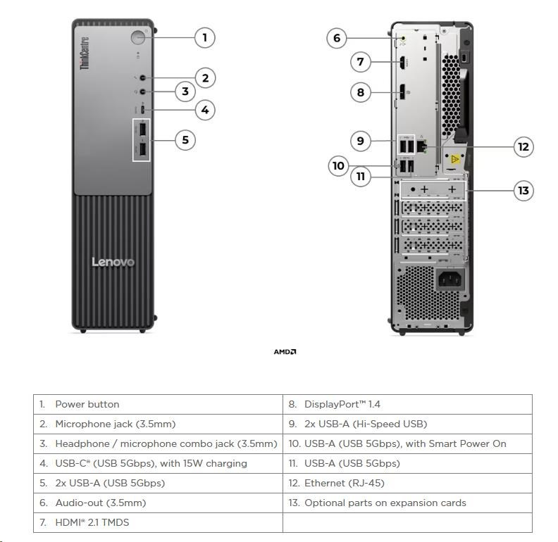 Popis LENOVO PC ThinkCentre neo 55s G6 - Ryzen 7 250,16GB,1TSSD,HDMI,DP,Radeon 780M,W11P,3Y Onsite