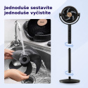 Levoit R432 Cyclone je navržen pro maximální pohodlí uživatele. Jeho konstrukce umožňuje nastavení výšky, takže jej lze použít jako stojanový nebo stolní ventilátor. Díky 120° horizontální a 90° vertikální oscilaci zajišťuje rychlou a rovnoměrnou cirkulaci vzduchu v místnosti. Jednou z klíčových vlastností tohoto ventilátoru je jeho mimořádně tichý provoz s minimální hlučností pouhých 20 dB, což je ideální pro použití během spánku nebo při práci vyžadující soustředění. V režimu spánku se navíc displej automaticky vypíná, aby nerušil váš odpočinek.