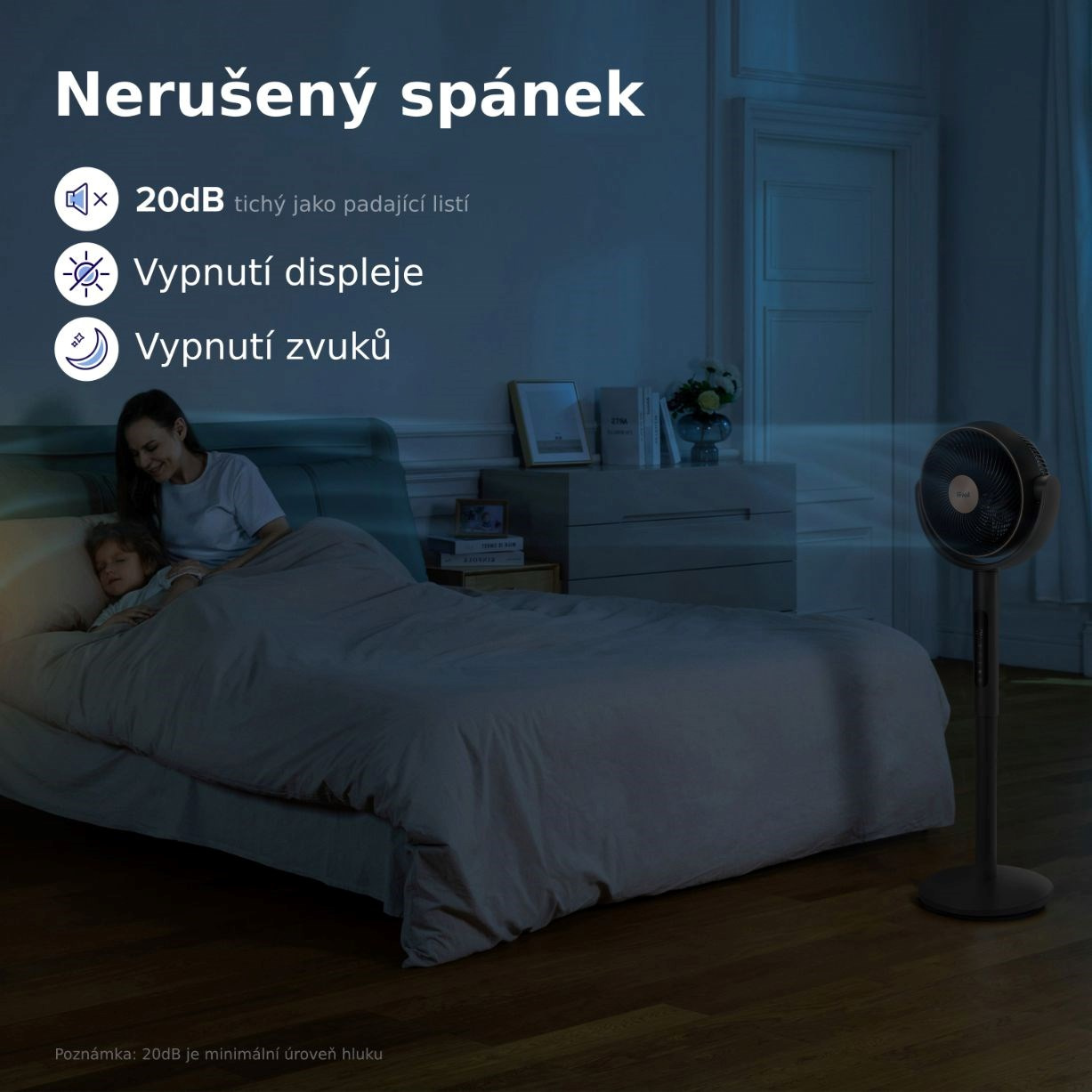 Stojanový ventilátor Levoit je ideálním společníkem pro klidný spánek, protože jeho hlučnost dosahuje pouhých 20 dB, což je srovnatelné s šepotem. Pro maximální pohodlí můžete snadno vypnout displej, aby vás během noci nerušily žádné světelné signály. Navíc je možné deaktivovat všechny zvuky, což zajišťuje, že vás nic nebude vyrušovat od odpočinku a relaxace.