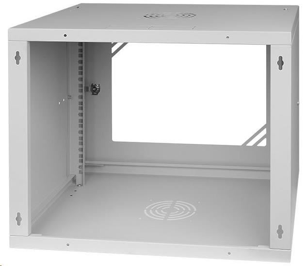 LEXI-Net 19" nástěnný rozvaděč Basic 9U 525x450, skleněné dveře, bez zad, rozložený, šedý