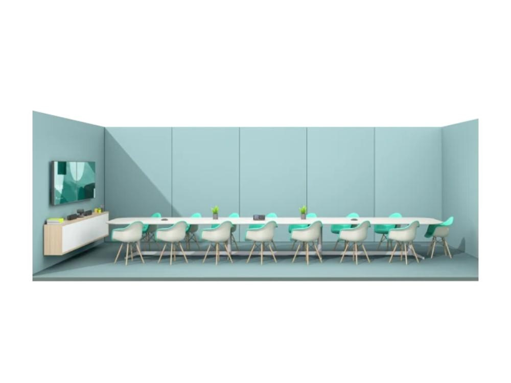 | Kabely/Napájení | Kamera > obrazový rozbočovač Počítač v konferenčním sále > obrazový/stolní rozbočovač Obrazový rozbočovač > stolní rozbočovač Obrazový rozbočovač > reproduktor (x2) Počítač v konferenčním sále > obrazovka (x2) Stolní mikrofon Zásuvka > zdroj napájení (x2) zdroj napájení > obrazový/stolní rozbočovač (x2) |