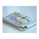 Magnetická tabule AVELI má bílý lakovaný povrch, elegantní rám z kvalitního eloxovaného hliníku, jehož součástí je praktická odkládací lišta na popisovače. Na tabuli je možné psát stíratelným fixem. Tabule má světle šedé plastové rohy, které zakryjí upevnění na zeď.