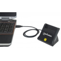 Ideal for desktop and notebook computers without built-in readers, the Manhattan USB Standing Smart/SIM Card Reader is easily installed using any USB port and the included software and driver CD. Plug and play with Windows and Mac compatibility, it requires no external power supply or cables for a simple USB connection.