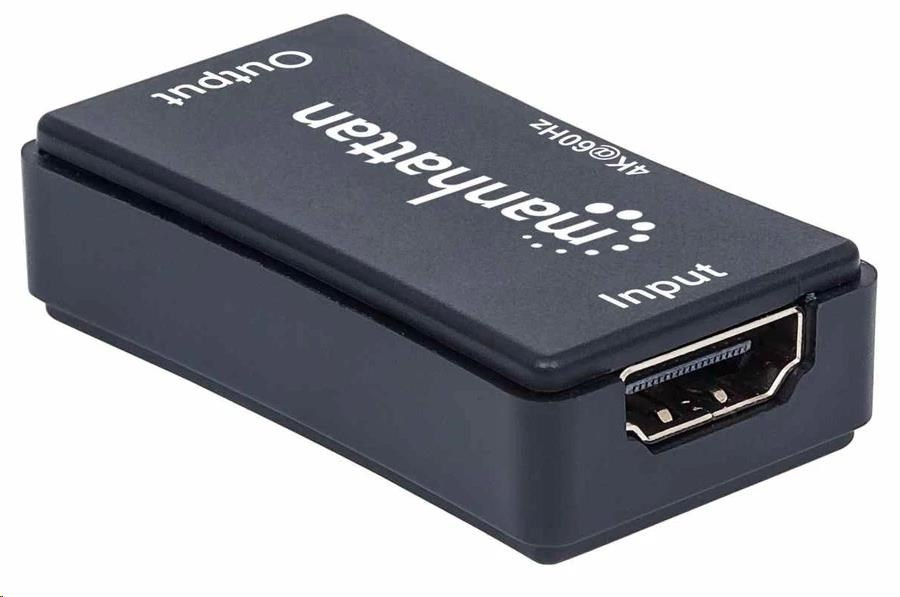 The Manhattan 4K HDMI Repeater extends the range of an HDMI signal by decoding and regenerating it at 4K@60Hz resolution from virtually any HDMI source (PlayStation, Xbox, Blu-ray player, satellite receiver, digital recorder, etc.) using existing HDMI cables. Designed for plug-and-play installation, the Repeater boosts weak signals to reduce or eliminate picture noise, degradation or sparkles on an HD display or projector. An additional USB port is included to boost power to video sources that need to travel longer distances.