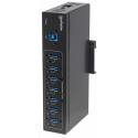 The Manhattan 7-Port Industrial USB 3.0 Hub easily expands and secures your USB access in industrial environments and high traffic areas. Versatile, sturdy mounting options allow the hub to be secured to a wall, used on a desktop or added to a DIN rail. This hub creates more open connection points for USB 3.0 devices, such as external hard drives and printers. Built-in screw-lock ports offer security for cables and additional stability from vibrations in the surrounding environment. It is backward compatible with previous USB standards to provide flexibility for attached devices. The Manhattan 7-Port Industrial USB 3.0 Hub offers plug-and-play, hot-swap capabilities and data transfer speeds up to 5 Gbps.