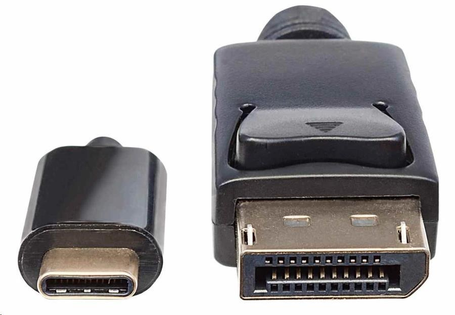 The Manhattan USB-C to DisplayPort Adapter Cable transmits a USB audio/video signal to a DisplayPort projector, flat-panel display, television or similar device. Built-in circuitry allows digital media enthusiasts to easily enjoy USB-based multimedia content on an Ultra High Definition (UHD) display or TV while maintaining simultaneous A/V reception at the source. Its UHD capability supports up to 3840x2160@60Hz and 4K to serve a wide range of resolutions in many devices and UHD applications including training, retail and trade show settings. Your source device must support DP Alt Mode. No additional setup is required. It effortlessly delivers digital content that is stored on a smartphone, tablet, Ultrabook or notebook computer to a display with DisplayPort input capabilities.