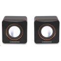 Maximize audio experiences with the MANHATTAN 2600 Series USB Mobile Speaker System. Its compact, USB design delivers rich, full-range sound from notebook computers, netbooks, portable CD/DVD players and other USB-equipped mobile media devices. Solid, well-built enclosures help re-create a balanced, full-spectrum frequency response. The built-in USB cable quickly connects without special drivers, batteries or an external power supply to easily share music, improve presentations or enjoy movies, games and other multimedia content. The MANHATTAN 2600 Series USB Mobile Speaker System makes an ideal audio replacement or upgrade for mobile computing and is an alternative to headphones for enjoying favorite stereo sounds.