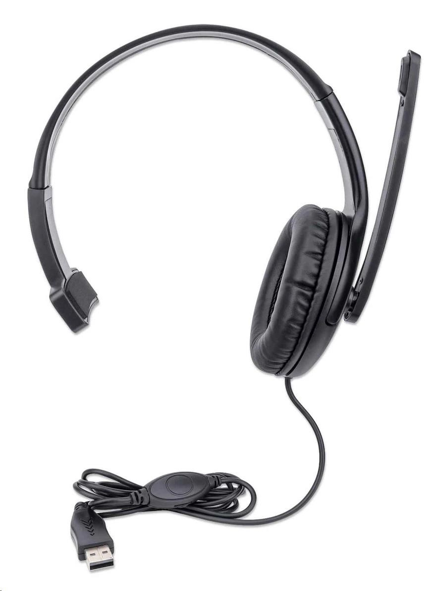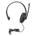 Single-sided Over-ear Design, Wired, USB-A Plug, In-line Volume Control, Adjustable Microphone, Black