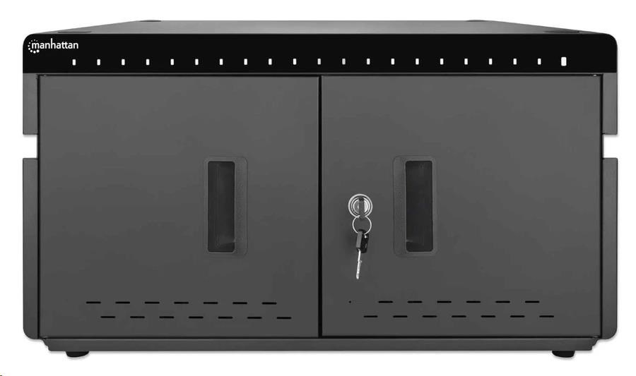 Keep your devices organized in the 20 bays with 264 (D) x 22 (W) x 235 (H) mm / 10.39 x 0.87 x 9.25 in. each. Use the cable management built into the dividers to structure your charging cables (available from Manhattan). As this Desktop Charging Cabinet features USB-C ports instead of AC outlets, you do not need additional wall chargers. The AC input on the back is a C20 connector that lets you replace the included power cable with other cables based on your region.