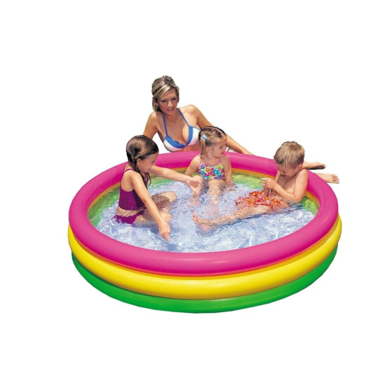 Dětský bazének je složený ze tří prstenců, každý z nich se nafukuje samostatně. Podlaha z měkčeného PVC zabraňuje odření a současně působí protiskluzově. Bazén lze umístit kdekoliv, kde bude nejmenším plavcům vyhovovat. Pod bazén je vhodné dokoupit ochranou podložku..Více