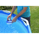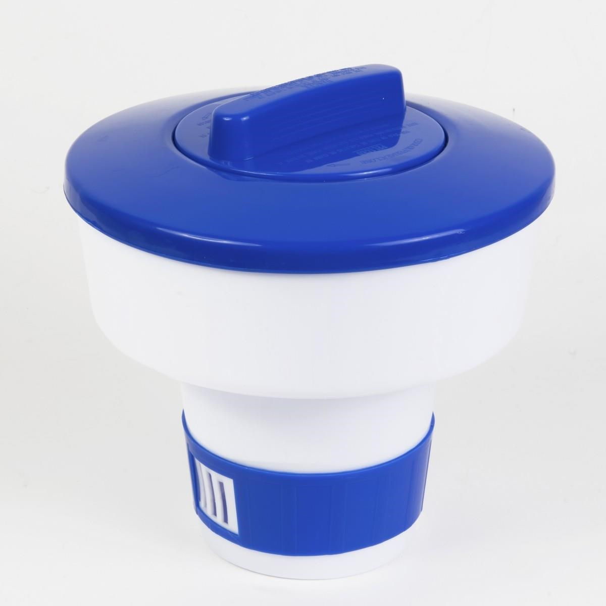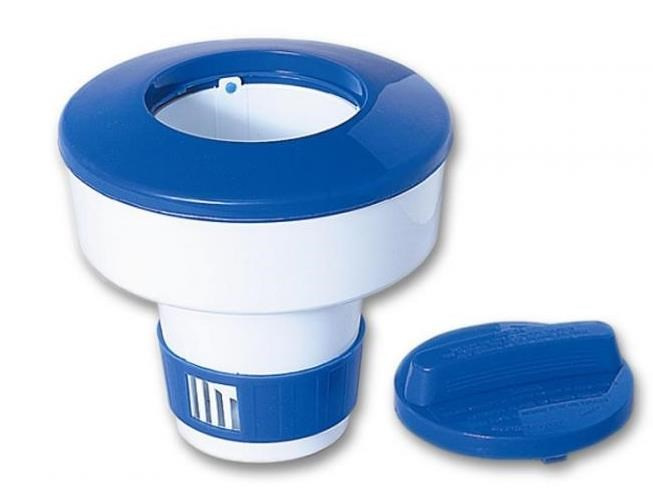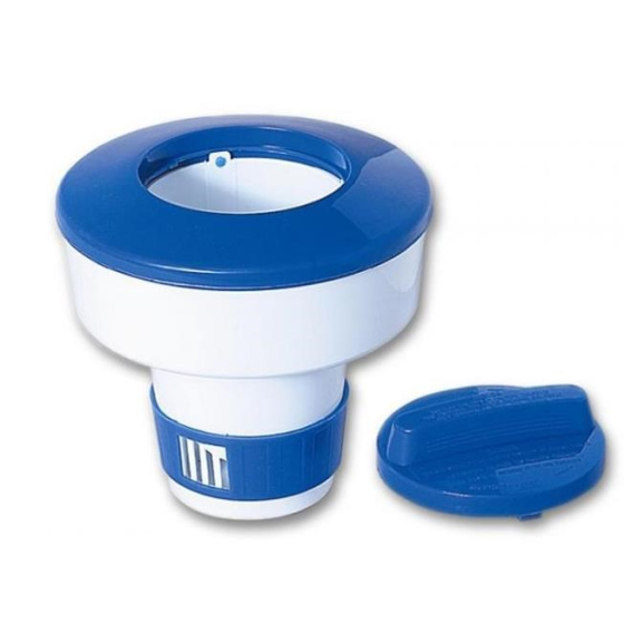 Plovoucí plastový dávkovač s regulační mřížkou pro chlorové tablety.Postupným uvolňováním chloru zajišťuje v průběhu sezony stálou dezinfekci bazénové vody.