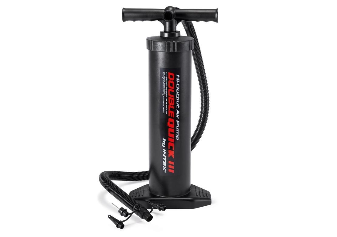 Velká ruční pumpička pro rychlé nafouknutí postelí, vodních hraček nebo míčů (fotbal, basketbal, atd.). Variabilní redukce, jehla na míče.