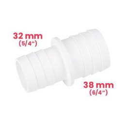 Spojka na propojení hadice 32 mm a 38 mm. Bílá barva.