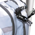 60mm široká karabina s pevným navíjecím kabelem o délce 90cm. Její kovové tělo je lehké a snadno se nosí. Kovový třmen o průměru 3mm je vhodný pro většinu zipů. Obsahuje 3-místnou resetovatelnou kombinaci zámku. Doporučujeme pro ochranu zavazadel, sedadel a helem.