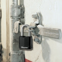 - Visací zámek o šířce 48 mm s tělem z laminované oceli s povrchovou úpravou odolnou proti povětrnostním vlivům.