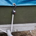 Speciální upínací guma o délce 800 mm a průměru 9,5 mm zakončená háčky. Ploché ocelové háčky pro vyšší pevnost v tahu. Maximální nosnost 85 kg. Plastem kryté háčky zabraňující poškození nákladu. Barva: šedá Cena za kus