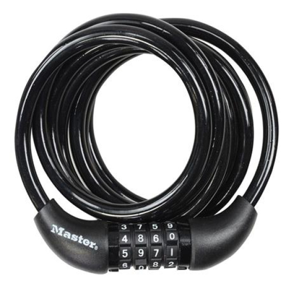 Pevný spirálový kombinační kabelový zámek je dlouhý 1,8m a má průměr 8mm pro maximální pevnost a flexibilitu. Obsahuje integrovaný nastavitelný 4-ciferný kombinační zámek. Jeho vinylový potah zabraňuje poškrábání. Vlastní navíjení pro snadné ukládání.