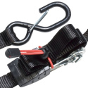 Set 2ks upínacích popruhů s ráčnou zakončených háčky. Délka 4 250 mm a šířka 25 mm. Vysokopevnostní háčky. Páka ráčny z odolného PVC plastu. Maximální nosnost 400 kg. Barva: černá Cena za set