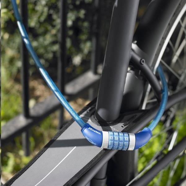 Ocelové lanko o průměru 10 mm a délce 1 200 mm má vinylový potah, který zabraňuje poškrábání laku. Obsahuje integrovaný nastavitelný 4-ciferný kombinační zámek (10 000 možností). Bezpečnostní třída Master Lock™ 5. Materiál: ocel Barva: modrá