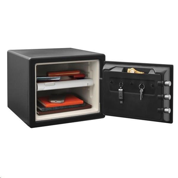 Trezor odolný vodě a ohni LFW082FTC má objem 22,7l. Jeho masivní ocelová konstrukce je odolná vodě (24 hod) a ohni (>60 min). Obsahuje 3 ocelové západky o průměru 25mm a skryté panty zabraňující vypáčení, dále součástí jsou 3 nastavitelné police..Více