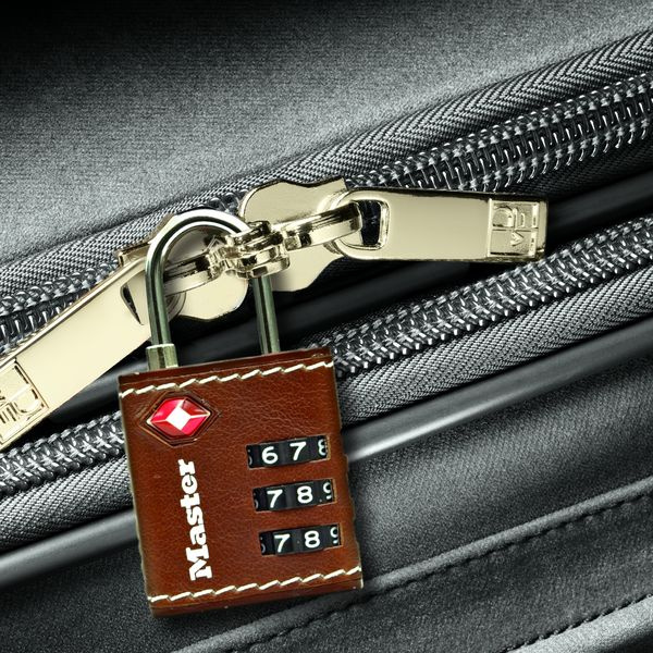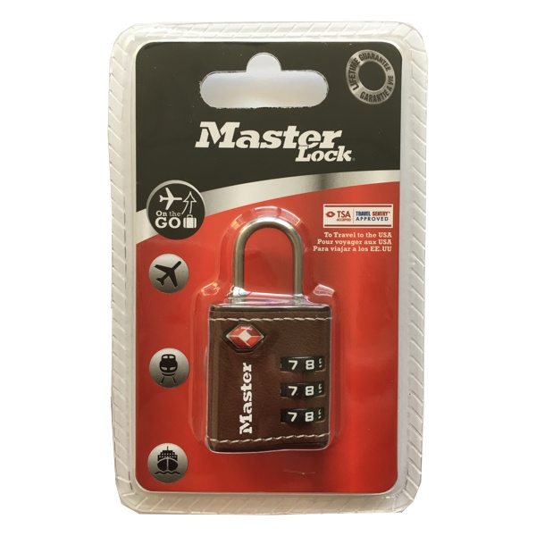Visací kombinační zámek o šířce 32 mm pro zavazadla, schválen agenturou TSA, má elegantní kožený design. Kovové tělo zámku je odolné proti poškození. Třmen je z oceli o průměru 3 mm a je odolný proti přeřezání a přestřižení. Obsahuje nastavitelnou 3-cifernou kombinaci zámku.