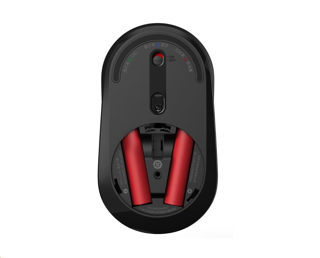 Bezdrátové připojení pomocí Bluetooth nebo malého 2,4GHz USB přijímače ve spodní části myši. Pokud chcete spárovat a pohodlně pracovat na dvou počítačích, využijte ovládací tlačítko režimu.