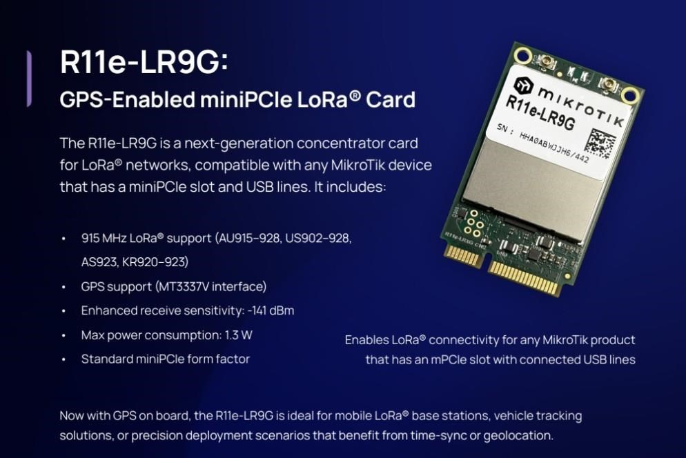 Popis MikroTik R11e-LR9G miniPCIe LoRa® adaptér s GPS