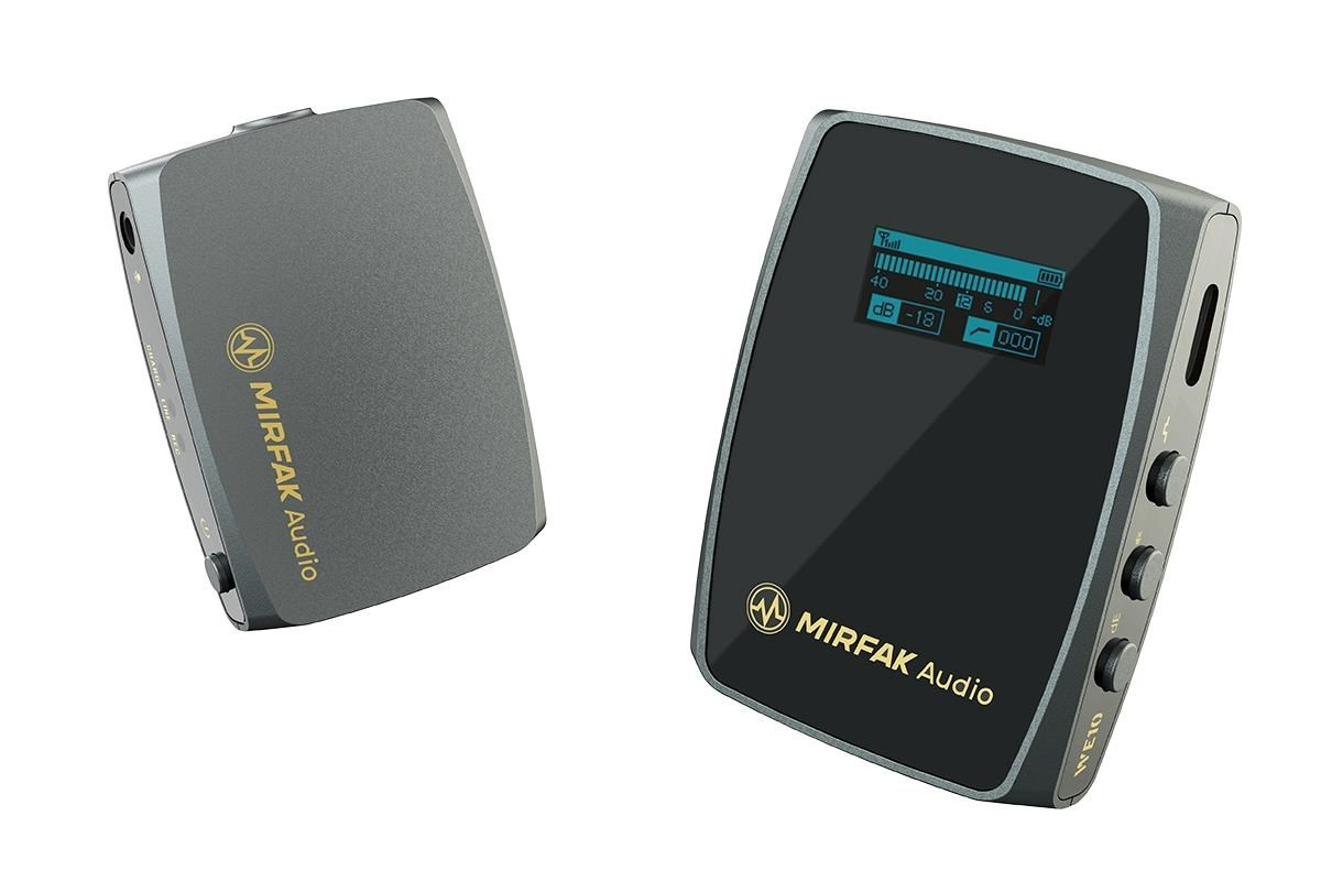 Mirfak Audio WE10 je kompaktní bezdrátový mikrofonní systém, který je ideální pro tvorbu obsahu, filmování, jevištní prezentace, vlogování, YouTube videa, živé vysílání atd. Díky jeho malým rozměrům ho sbalíte do tašky nebo kapsy a je připraven k nahrávání během chvilky. Přehledná obrazovka přijímače znázorňuje všechna zvolená nastavení, sílu signálu, úroveň baterie a vizualizuje úroveň vstupu z dálkového snímače.