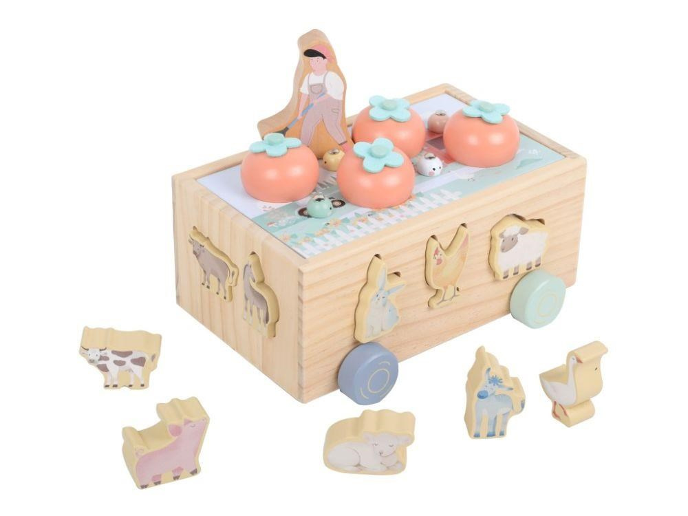 Multifunkční dřevěná pojízdná farma se zvířátky 3v1