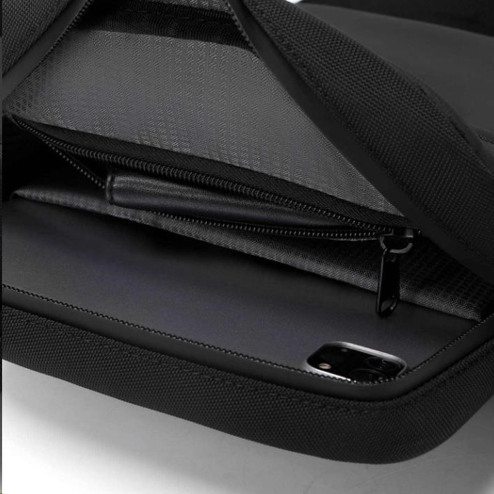 Taška je velmi prakticky členěna. Najdete tu hlavní kapsu s vnitřními přihrádkami, přední kapsu a zadní skrytou kapsu.