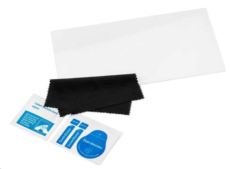 - Součástí balení je čisticí hadřík, dva dezinfekční vlhčené ubrousky, dvě lepítka pro odstranění prachu a nálepky usnadňující aplikaci skla.