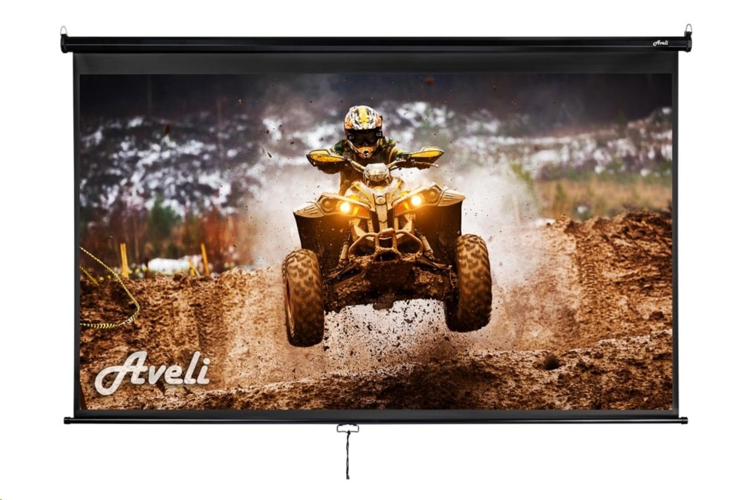 Nástěnné projekční plátno AVELI, 221x125cm (16:9) 100", černý tubus