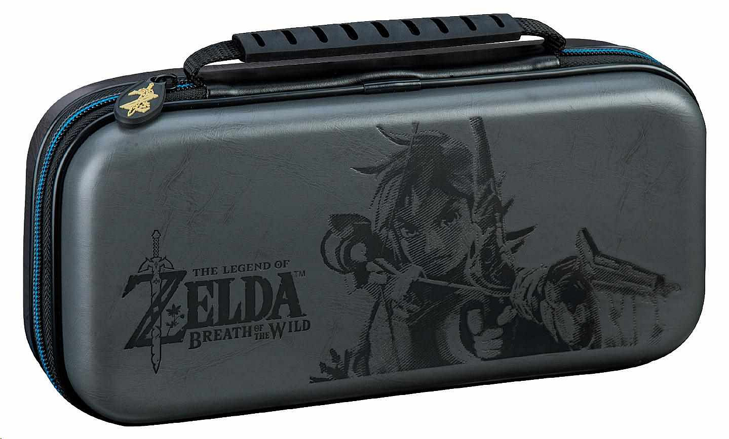 V tomto luxusním cestovním pouzdru s motivem akční dobrodružné hry Legend of Zelda™: Breath of the Wild můžete bezpečně a bez obav převážet svou oblíbenou herní konzoli Nintendo Switch™. Polstrovaný oddělovač uprostřed pouzdra chrání obrazovku konzole před poškrábáním a v síťované kapse na zip na jeho druhé straně si můžete uschovat karty s dalšími hrami.