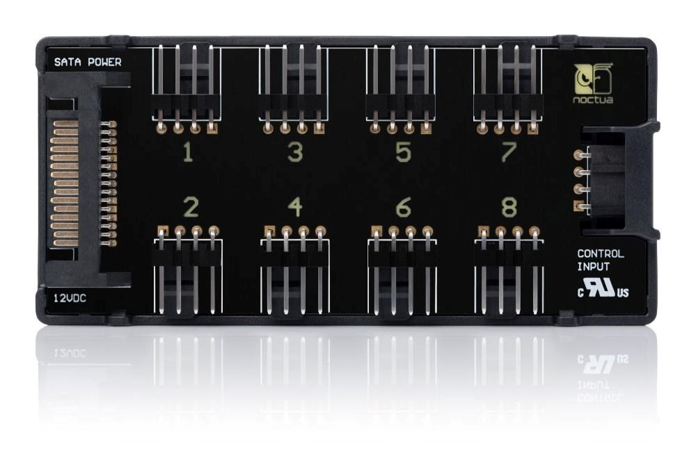 Popis NOCTUA NA-FH1 Fan Hub, 8x 4-pin PWM, SATA napájení, černá
