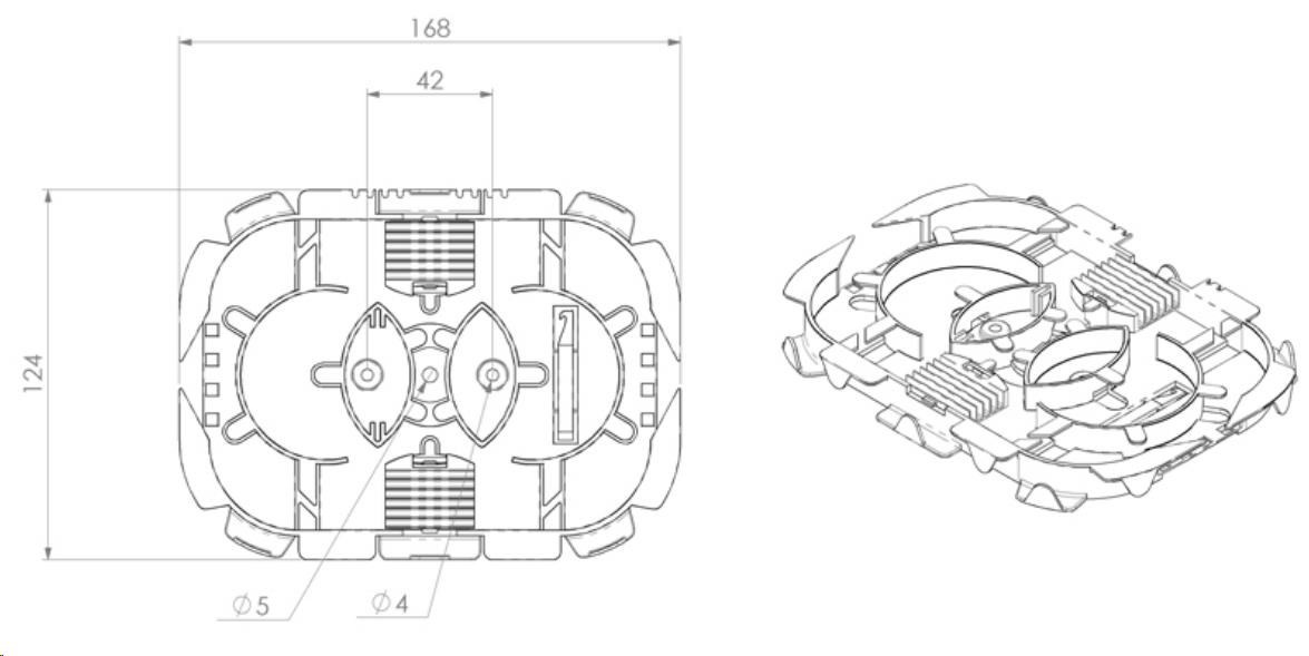 Optická kazeta OPTRONICS s hřebínky až pro 24 svarů, transparentní víčko, 2 výklopné držáky