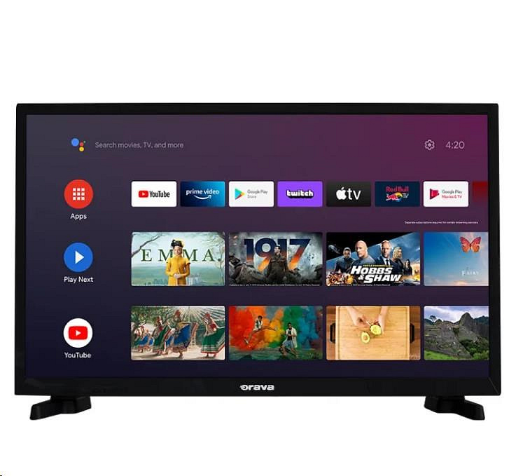 Popis Orava 24" TV LT-ANDR24 B01, HD Ready, LED, Android Smart TV, WiFi, HDR, tuner DVB-T2/C/S2, Android 11