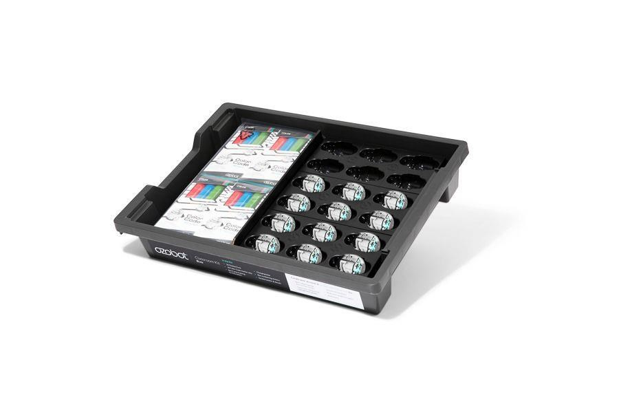 12 robotů Ozobot Bit+ 12 sad barevných fixů Nabíjecí stanice s 12 sloty, napájecí kabel Karta s popisem vlastností Karta s vysvětlením kalibrace a barevných kódů Karta s úlohami "Zeptej se Ozobota" a "Tornado" Karta s úlohami "Bludiště" a "Smajlíci" Karta s úlohami "Pravopis" a "Had" Karta s úvodem do kódování Ozobota "Get started" Karta barevných samolepek Karta číselných samolepek Karta mini samolepek k dobarvení kódu 2 karta velkých samolepek k dobarvení Dokumentace