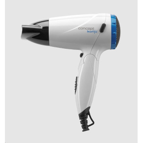 Fén na vlasy - s ionizátorem, příkon 2100 W, studený vzduch, 3 rychlosti, možnost nastavení 3 různých teplot, s koncentrátorem, poutko na zavěšení součástí, délka přívodního kabelu 1,8 m, bílá barva.