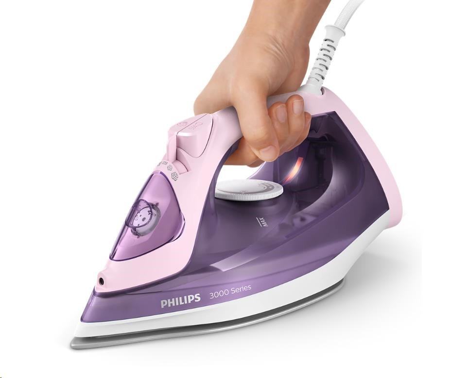 Popis Philips 3000 Series DST3020/30 napařovací žehlička, 2200 W, keramická žehlicí plocha, fialová